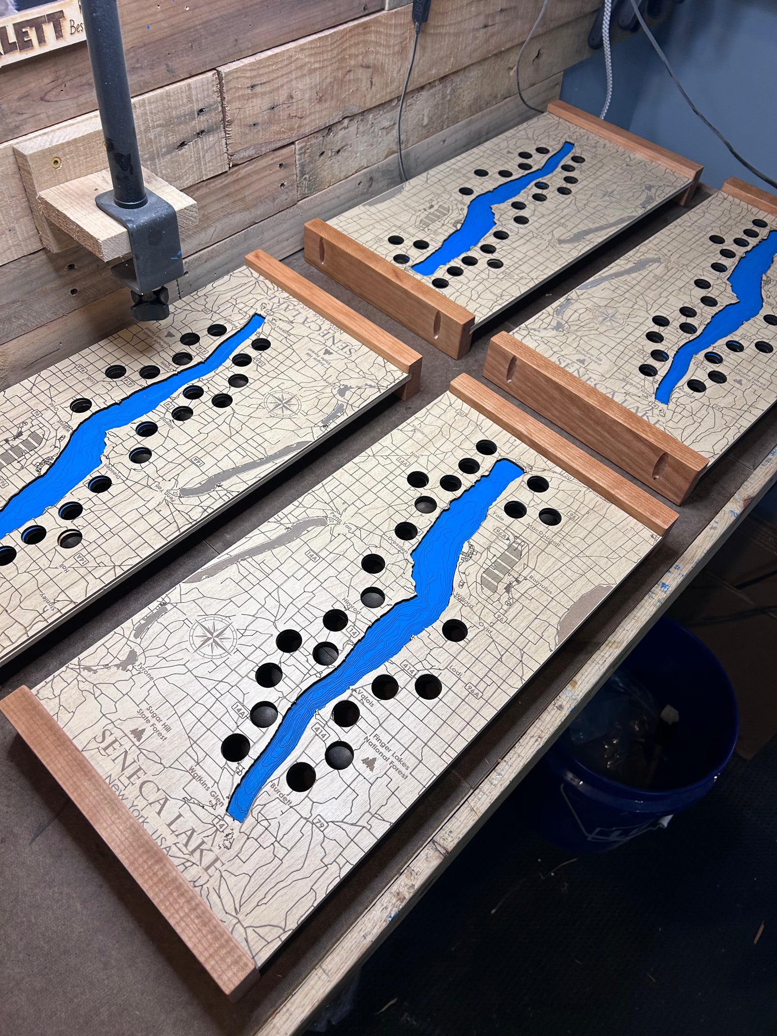 We have a wide selection of Finger Lakes Maps, Winery Gifts, Christmas Ornaments and Adirondack Hiking Gifts all inspired by our Finger Lakes Region. View our already designed maps and ornaments or visit our Custom Laser Project Section for a sample of our customized work. All design is done in house!