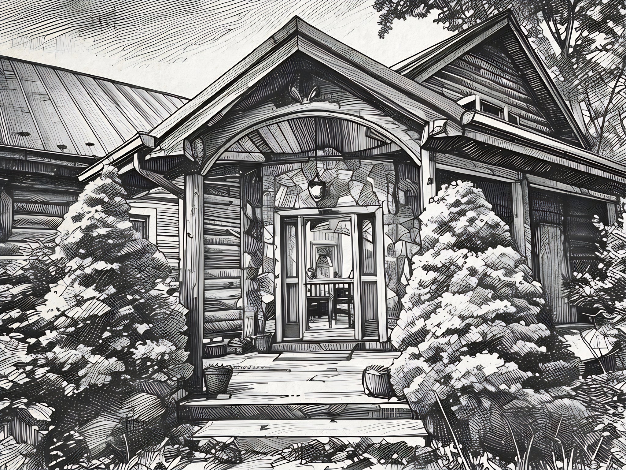 One of my customers wanted to gift her friends their favorite image of their long-time house in Boone, North Carolina which they had just sold. By digitally enhancing the photo, we translated it into some wonderful contrasts and shading which pulls out the details from the original picture.